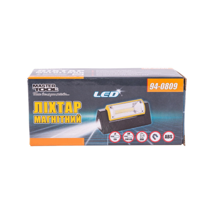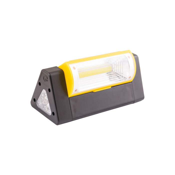 Яскраві світлодіоди, технологія LED переднє світло - 6xLED бічне світло - 3W COB LED світловий потік 150 lumen має два магніти для зручної роботи з металевими конструкціями поворотний підставу дозволяє регулювати кут нахилу бічного світла корпус виготовлений з протиударного пластика тип харчування: 4 батарейки AAA. 7LED