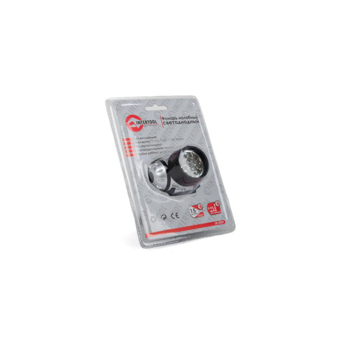 пиловологозахисту корпусу; Кількість діодів: 19 LED; Дальність освітлення: 15 м; Батарея: 3хААА; Кількість режимів: 4; Яскравість світіння: 45 Лм
