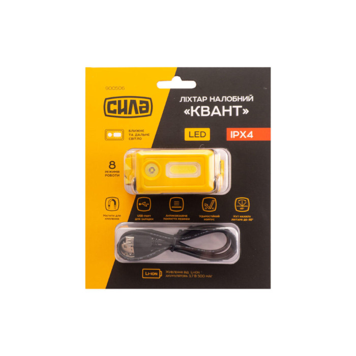 Час заряду акумулятора: 2 години; Додатково: USB-кабель, магніти на тильній сторонеі, індикатор заряду; Світловий потік: СОВ LED: 5Лм - 60 Лм - 140 Лм; SMD LED: 5Лм - 45 Лм - 120 Лм; Світловий елемент: COB LED, SMD LED