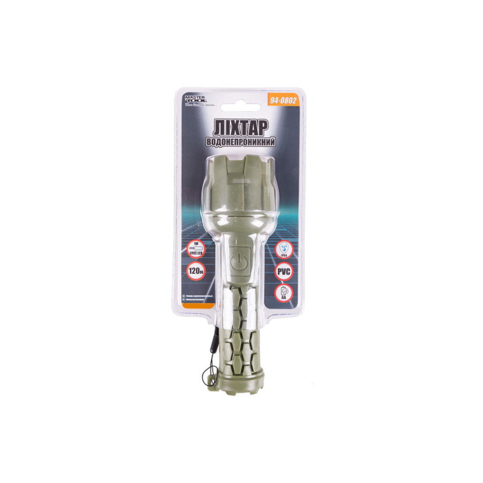 Яскравий світлодіод потужністю 1W, технологія CREE LED забезпечує дальність світла до 120 метрів світловий потік 120 lumen корпус виготовлений із пластику з гумовим покриттям, яке забезпечує захист при падінні до 1 метра ліхтарик має захист від води IP66 глибиною до 1 метра тип харчування: 2 батарейки AА. 1LED