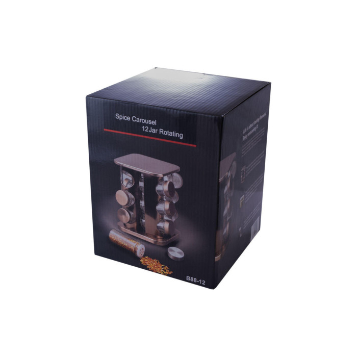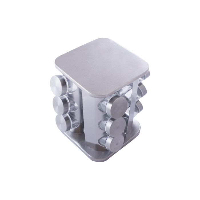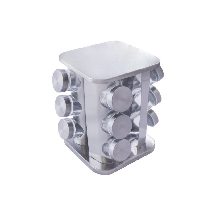 Опис Набору для спецій на підставці MHZ 3163, 13 предметів Набір для спецій на підставці MHZ 3163 - найзручніший спосіб зберігання запашних приправ для перших і других страв. Скляні ємності мають щільно закриваються кришки, тому ароматні спеції не втратять запаху, а рідкі приправи НЕ протекут. Баночки для спецій круглої форми, не займуть багато місця на полиці і в холодильнику.