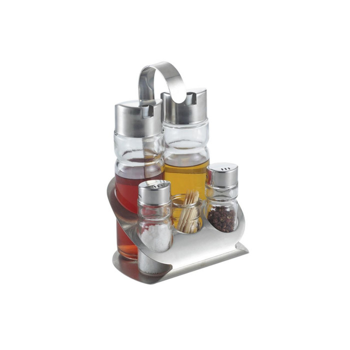 Набір для спецій Rainbow - 6 од. MR-1611D (MR-1611 D) Набір для спецій Rainbow - 6 ед.Состоіт з: ємність для масла, ємність для оцту, сільниця, перечниця, тримач для зубочисток, підставка.