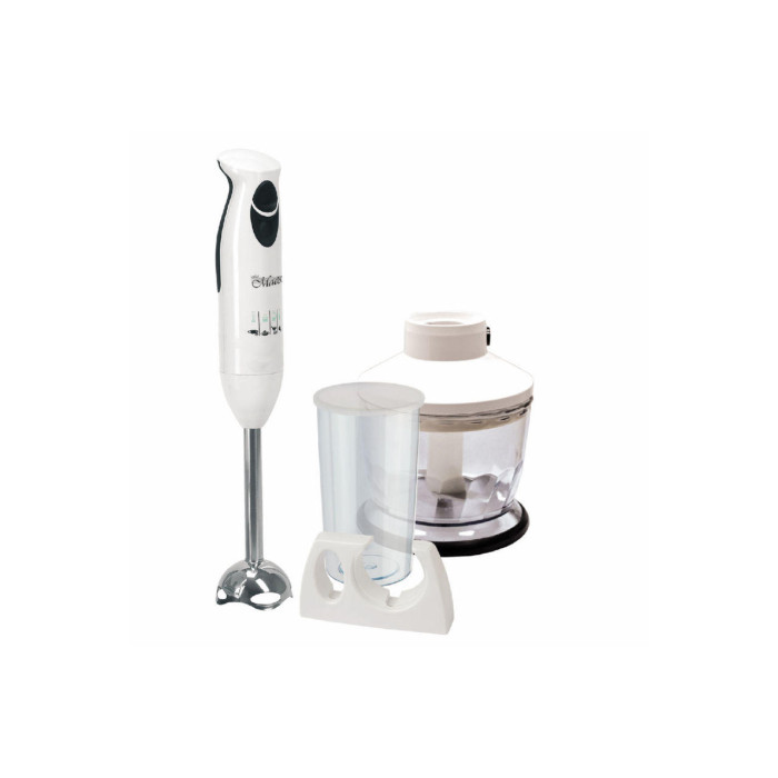 Сучасний ергономічний дизайн, можливість кріплення до стіни, зручність і простота в користуванні та чищення, ножі з нержавіючої сталі (міні-подрібнювач, погружной блендер)