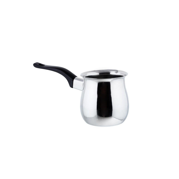 Турка Empire виготовлена ​​з високоякісної нержавіючої сталі, має відполіровану дзеркальну поверхню зі спеціальним покриттям, що дозволяє тривалий час зберігати блиск. Довга ручка з бакеліту не нагрівається і витримує досить великі температури, є отвір для підвішування. Можна мити в посудомийній машині.