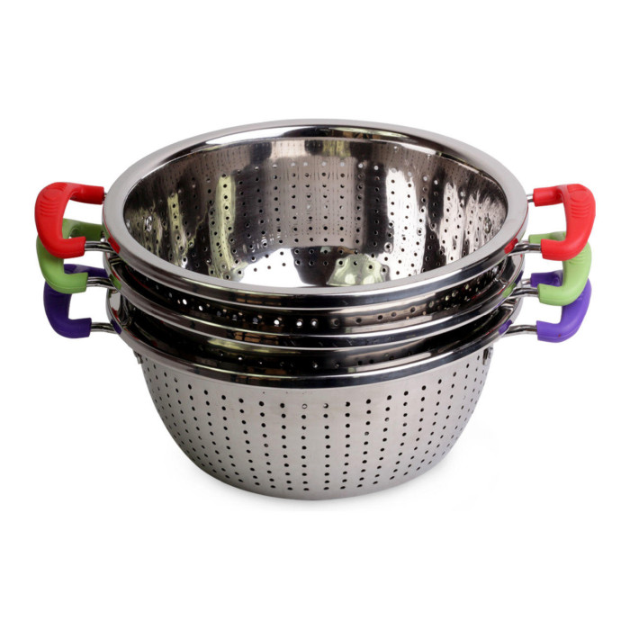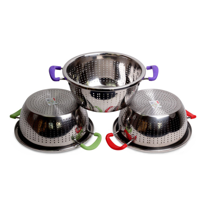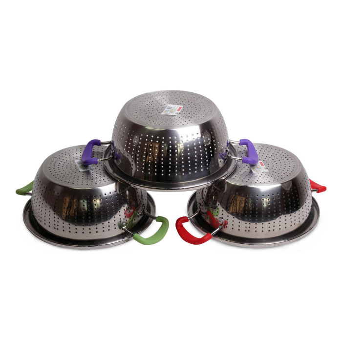 Друшляк нержавіючий Kamille - 260 мм з ручками і плоским дном