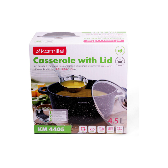 Каструля антипригарна Kamille - 240 мм x 4,5 л мармур
