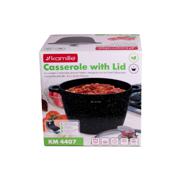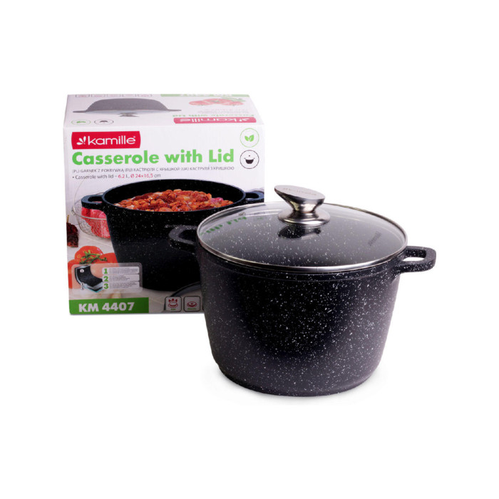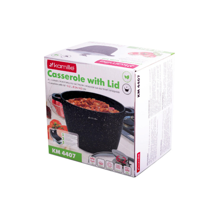 Каструля антипригарна Kamille - 240 мм x 6,2 л мармур