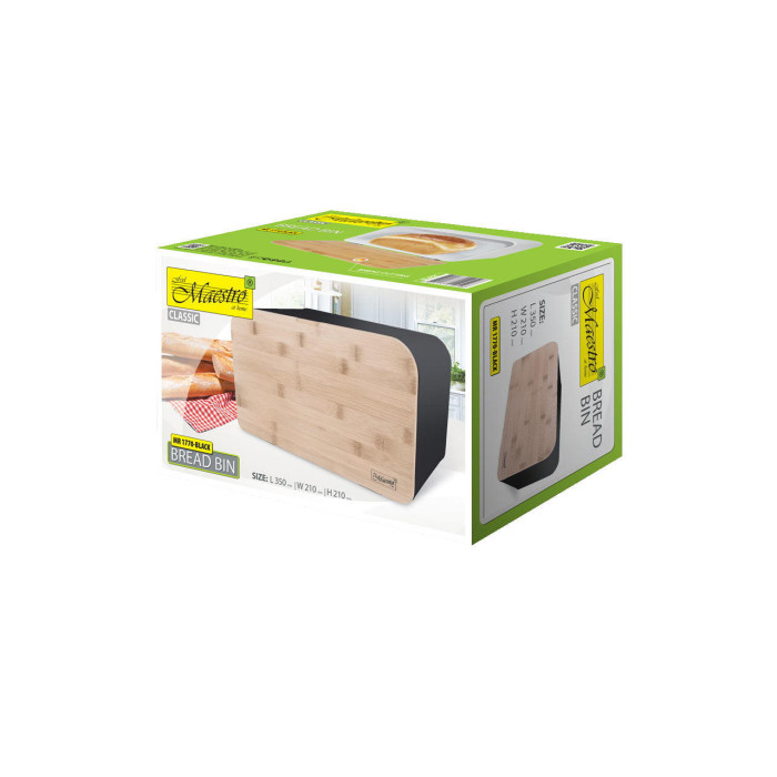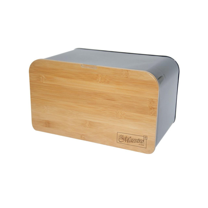 Хлібниця металева Maestro - красива і вишукана модель такої хлібниці оригінально буде виглядати на Вашому кухонному столі. Даний аксесуар Maestro виконаний в класичному дизайні. Він має, зручну егрономічную ручку, откідивающіюся кришку, Завдяки сатиновою полірування, хлібниця буде завжди стильно виглядати на столі, а властивості нержавіючої сталі не змусять вас засумніватися в якості посуду.