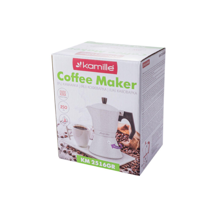 Кавоварка гейзерная алюмінієва Kamille - 150 мл індукція мармур сірий (2516GR)