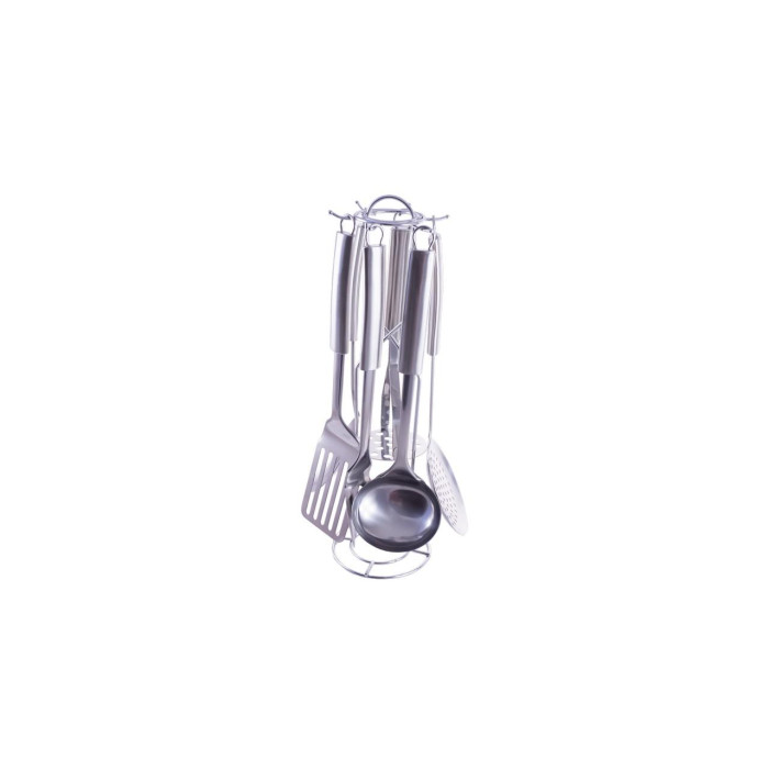Кухонний набір Empire М-5534 виготовлений з нержавіючої сталі найвищої якості. Такий посуд можна сміливо мити в посудомийній машині і використовувати при високих температурах. Стійка підставка має оригінальний дизайн і з легкістю утримує всі предмети набору.