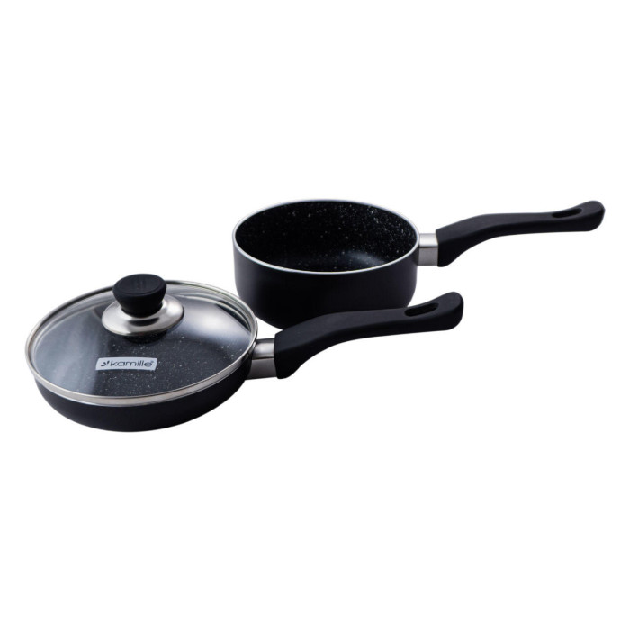 Набір посуду антипригарний Kamille - 1,2 л + 160 мм мармур (2 шт.) (0616MR)