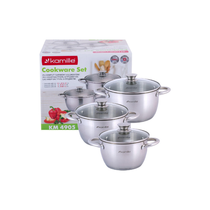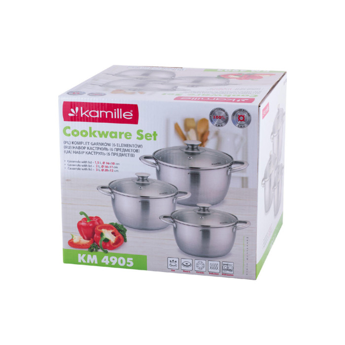 Набір посуду нержавіючий Kamille - 1,5 x 2 x 3 л (3 шт.) 4905 (4905)
