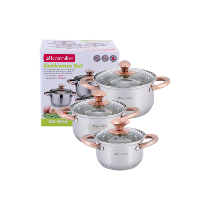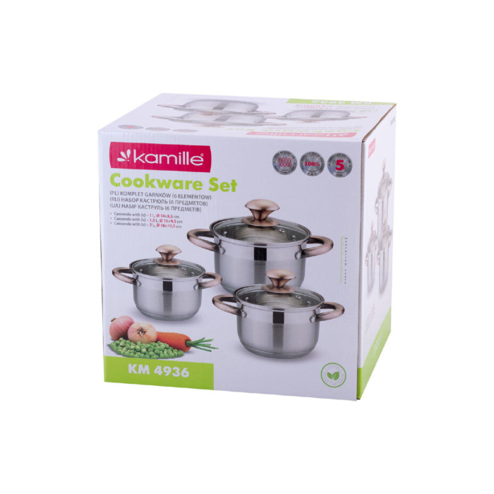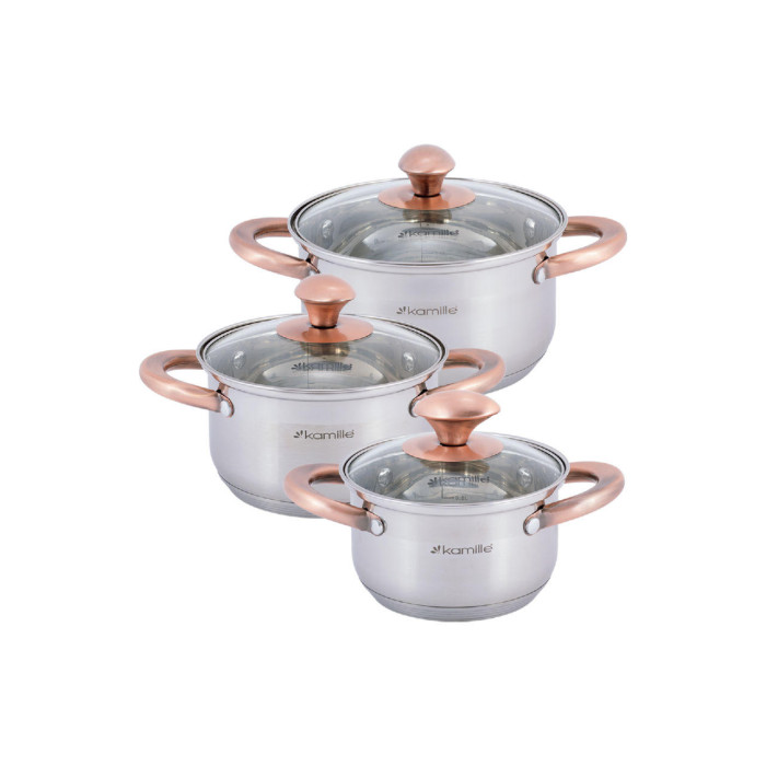 Набір посуду нержавіючий Kamille - 1,5 x 2 x 3 л (3 шт.) 4936