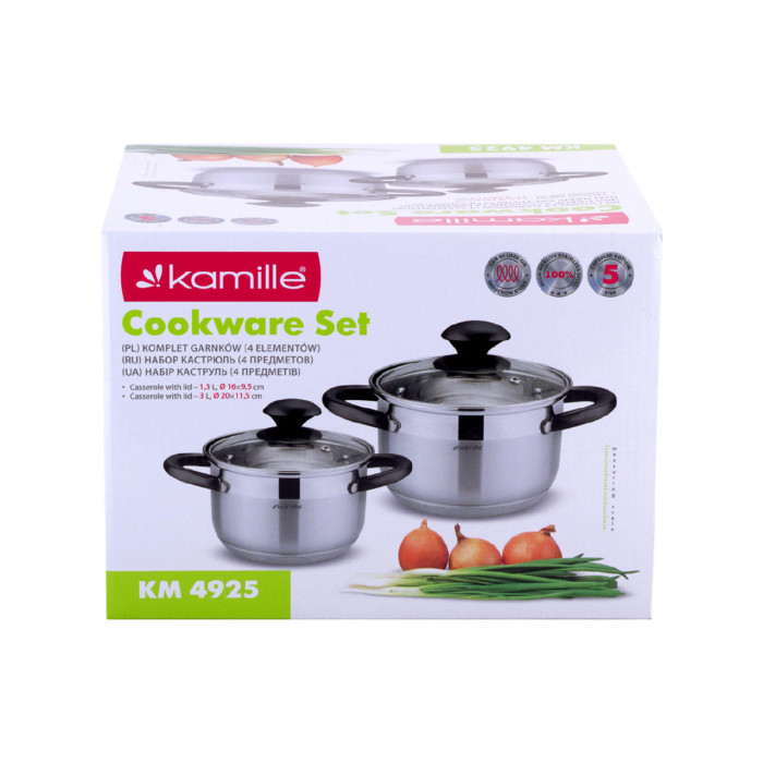 Набір посуду нержавіючий Kamille - 1,5 x 3 л (2 шт.) 4925