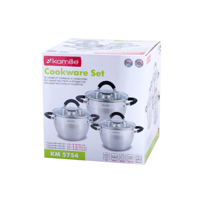 Набір посуду нержавіючий Kamille - 1,8 x 2,5 x 3,5 л (3 шт.) (5754)