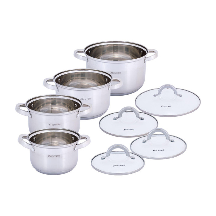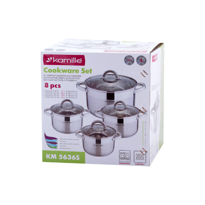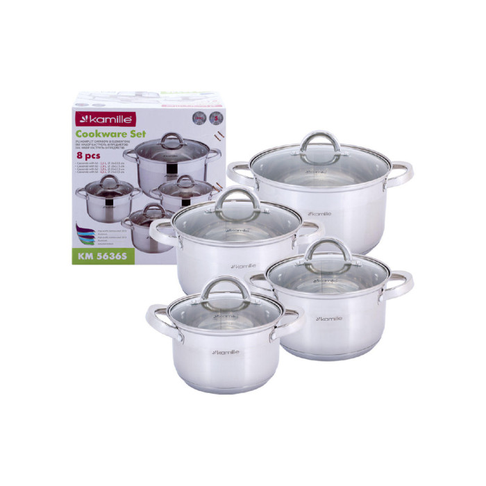 Набір посуду нержавіючий Kamille - 1,8 x 2,5 x 3,8 x 6,5 л (4 шт.)