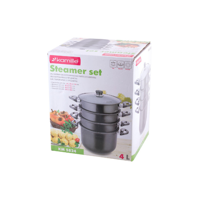 Пароварка антипригарна Kamille - 200 мм x 4 л x 3 решітки (5824)