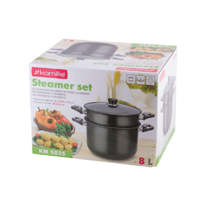 Пароварка антипригарна Kamille - 240 мм x 8 л x 1 решітка (5825)