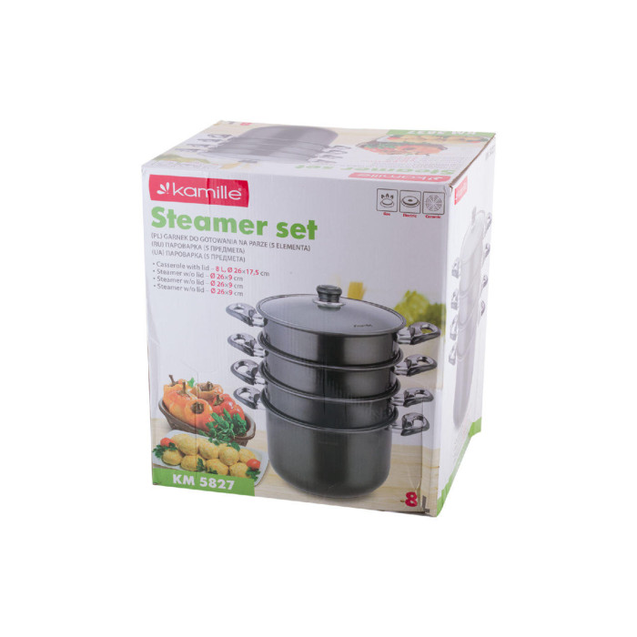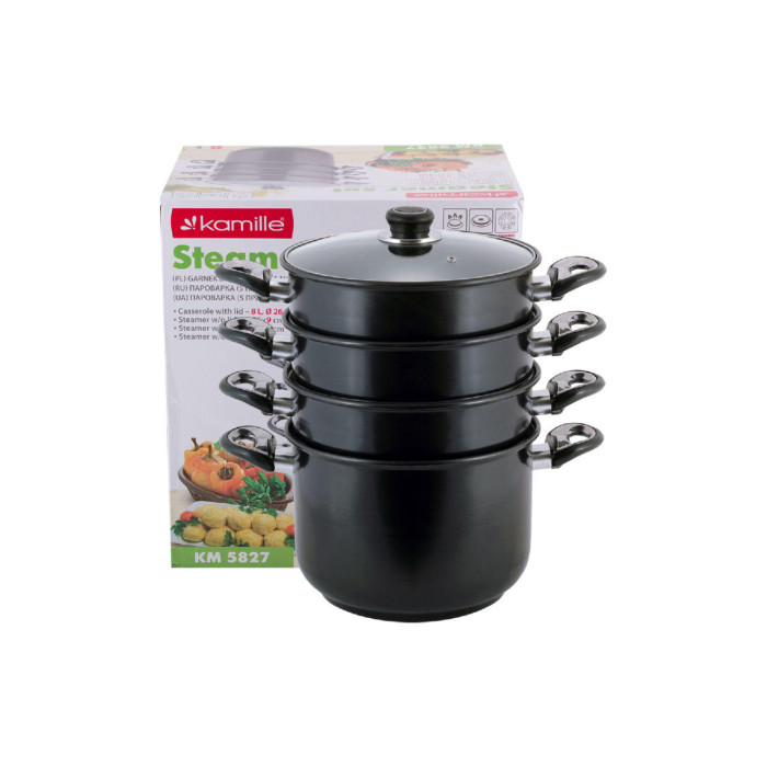Пароварка антипригарна Kamille - 240 мм x 8 л x 3 решітки (5827)