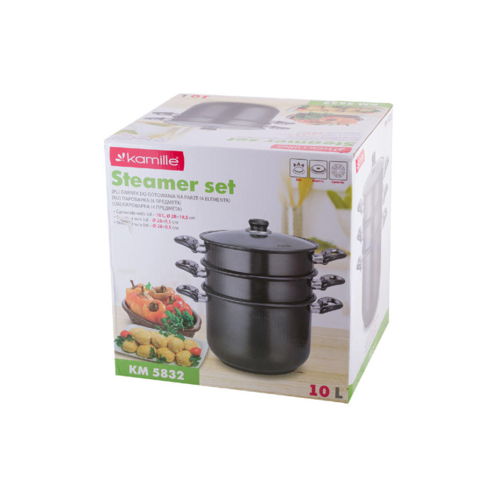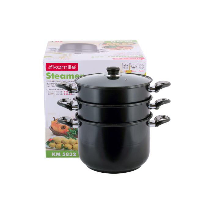 Пароварка антипригарна Kamille - 260 мм x 10 л x 2 решітки (5832)