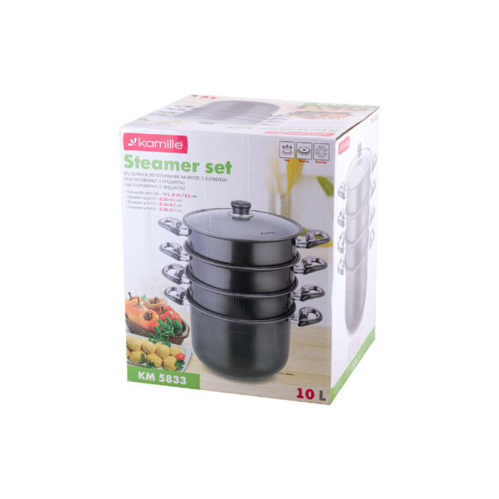 Пароварка антипригарна Kamille - 260 мм x 10 л x 3 решітки