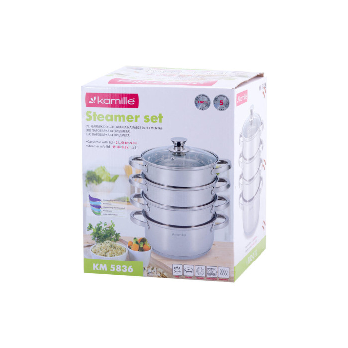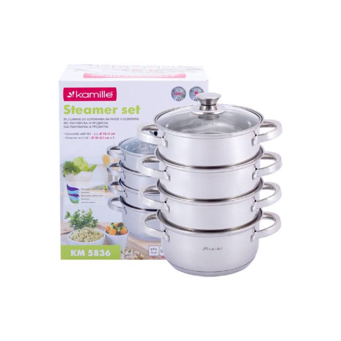 Пароварка нержавіюча Kamille - 180 мм x 2 л x 3 решітки