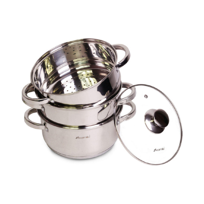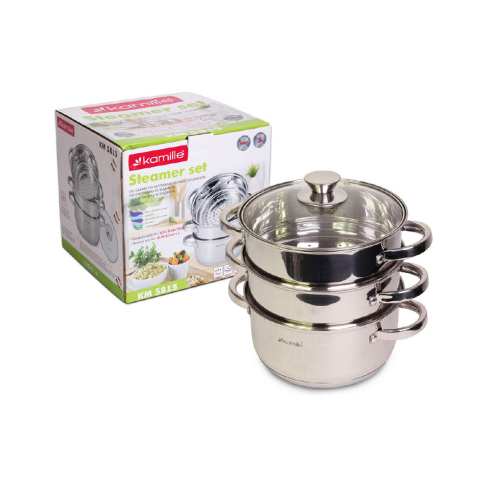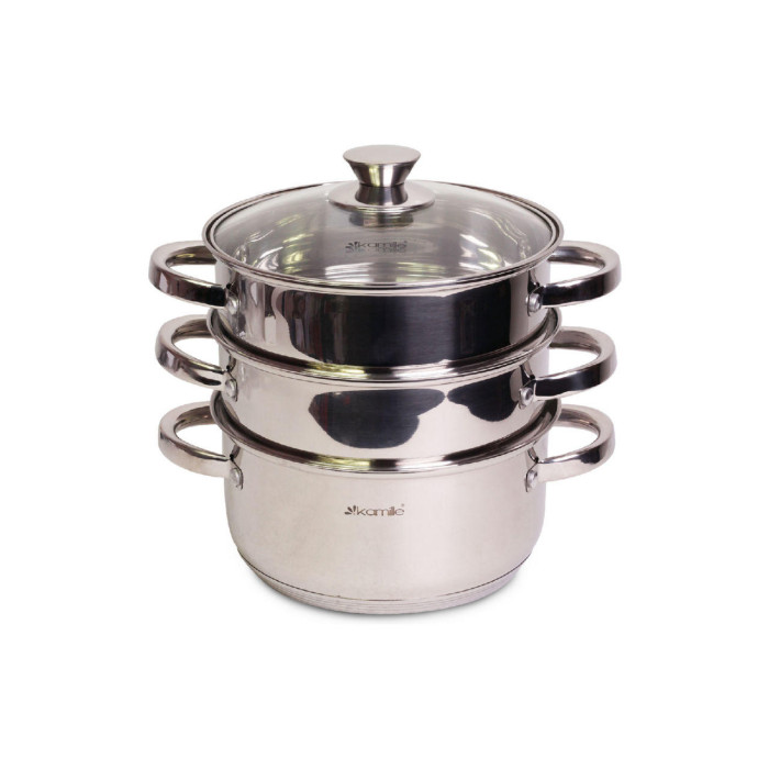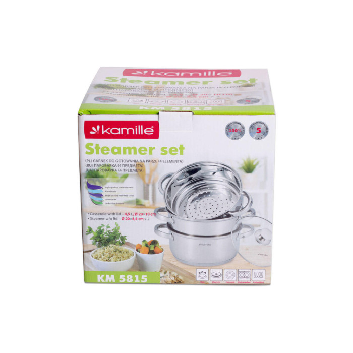 Пароварка нержавіюча Kamille - 200 мм x 4,5 л x 2 решітки