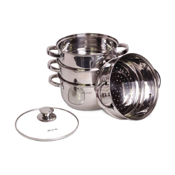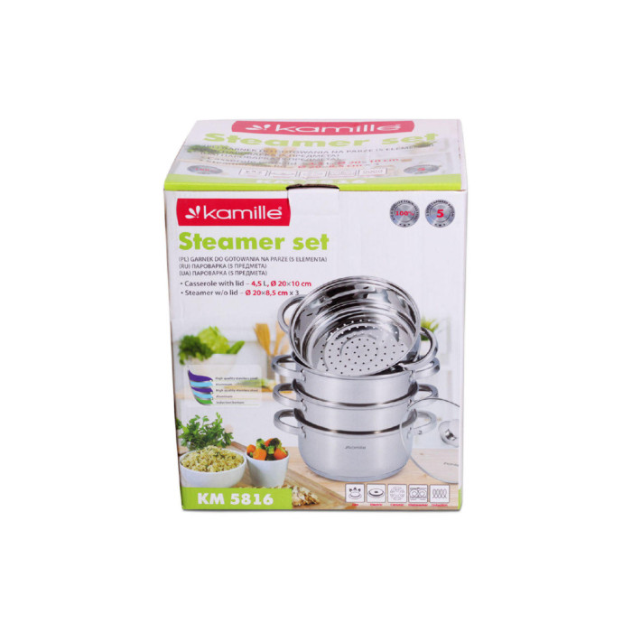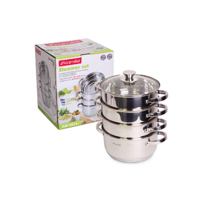 Пароварка нержавіюча Kamille - 200 мм x 4,5 л x 3 решітки