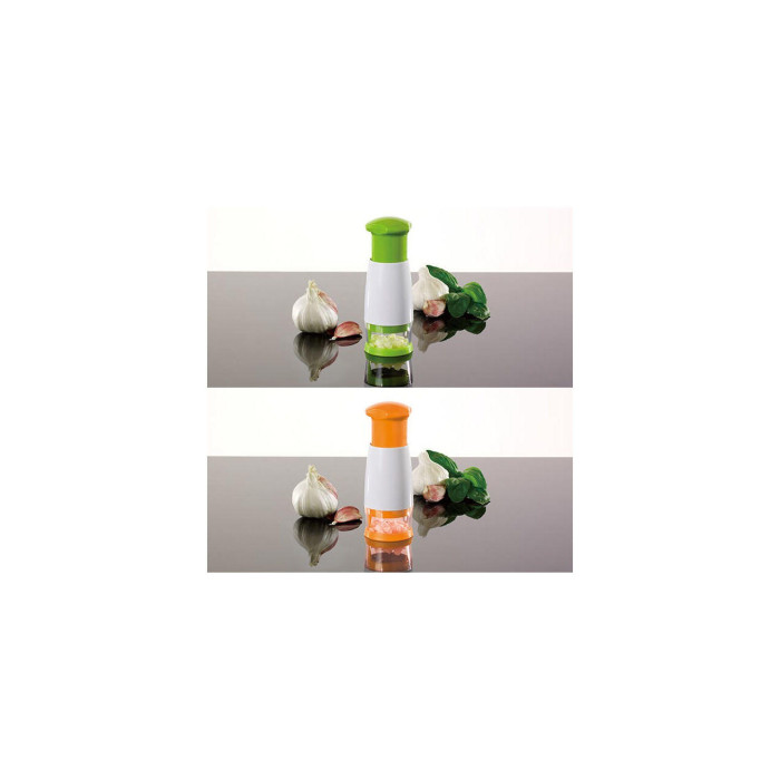 Призначений для часнику, грибів, овочів і зелені. Безпечний у використанні. Простота в догляді і очищення. Ножі виготовлені з нержавіючої сталі.