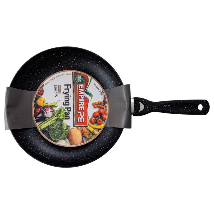 Сковорода антипригарна Empire діаметром 240 мм - відмінний вибір для домашньої кухні. Їжа в такому посуді не підгорає. Ергономічна ручка з пластика забезпечує зручність хвата, а посилене дно - рівномірний нагрів поверхонь. Гранітне покриття в рази підвищує стійкість посуду до ударів і подряпин. Завдяки композитного шару на дні і на бортах посуду екологічність сировини зберігається протягом 2-3 років. Інгредієнти краще помішувати дерев'яними лопатками, а ось жорсткі скребки замінити поролоновими губками. Особливо смачними в таких сковородах виходять стейки, овочеві запіканки, млинці та пиріжки.