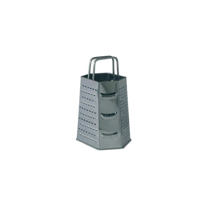 Багатофункціональна терка для нарізування і подрібнення різних продуктів. 6 - стороння з ручкою. Ножі виготовлені з нержавіючої сталі.