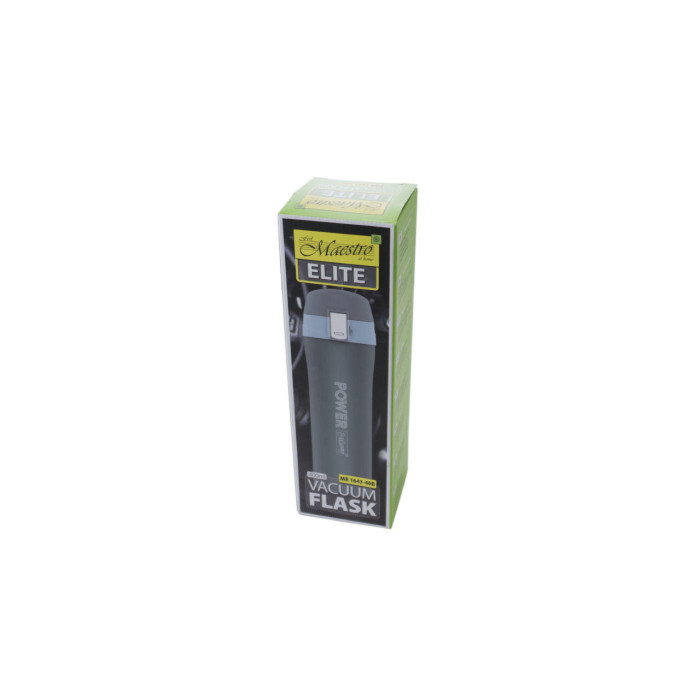 Приваблива термокружка MAESTRO на 400 мл. з оригінальним і практичним дизайном, призначена для зберігання гарячих або холодних напоїв. Термокружка суцільнометалева з високоякісної нержавіючої сталі 18/10 з удароміцними стінками. Термокружа має вакуумну термо ізоляцію і зберігає температуру продуктів тривалий час і має зручну багатофункціональної пробкою - кришкою з кнопкою автоматичного відкриття кришки. Термокружка знадобиться на роботі, в школі, в подорожі і спорт. Компактні розміри дозволяє носити термокружку з собою, а стильний і функціональний новий дизайн сподобається будь-якій людині.