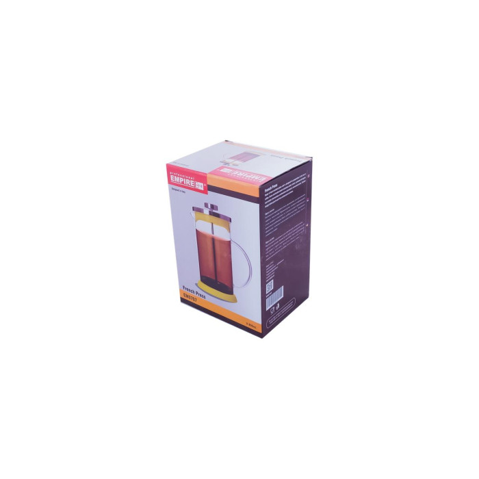 Заварювання гарячих напоїв у френч-пресі все більше набирає популярності. Іноді навіть такий простий пристрій як Френч-прес Empire - 800 мл може зробити життя зручнішим. Виконано сучасний заварник з жароміцного скла в поєднанні з нержавіючим корпусом. Призначений для заварювання чаю, меленої кави, трав'яних зборів. Усередині колби є спеціальний фільтр, який затримує гущу. Вважається, що після віджимання, напій отримує більш виражений смак і аромат. А у крупинок і листочків немає шансів потрапити в чашку. Ніщо не завадить вам насолодитися улюбленим напоєм. Міцна сталева ручка надійно зафіксована до підстаканнику. Пристрій, об'ємом 800 мл, просте в експлуатації і обслуговуванні.